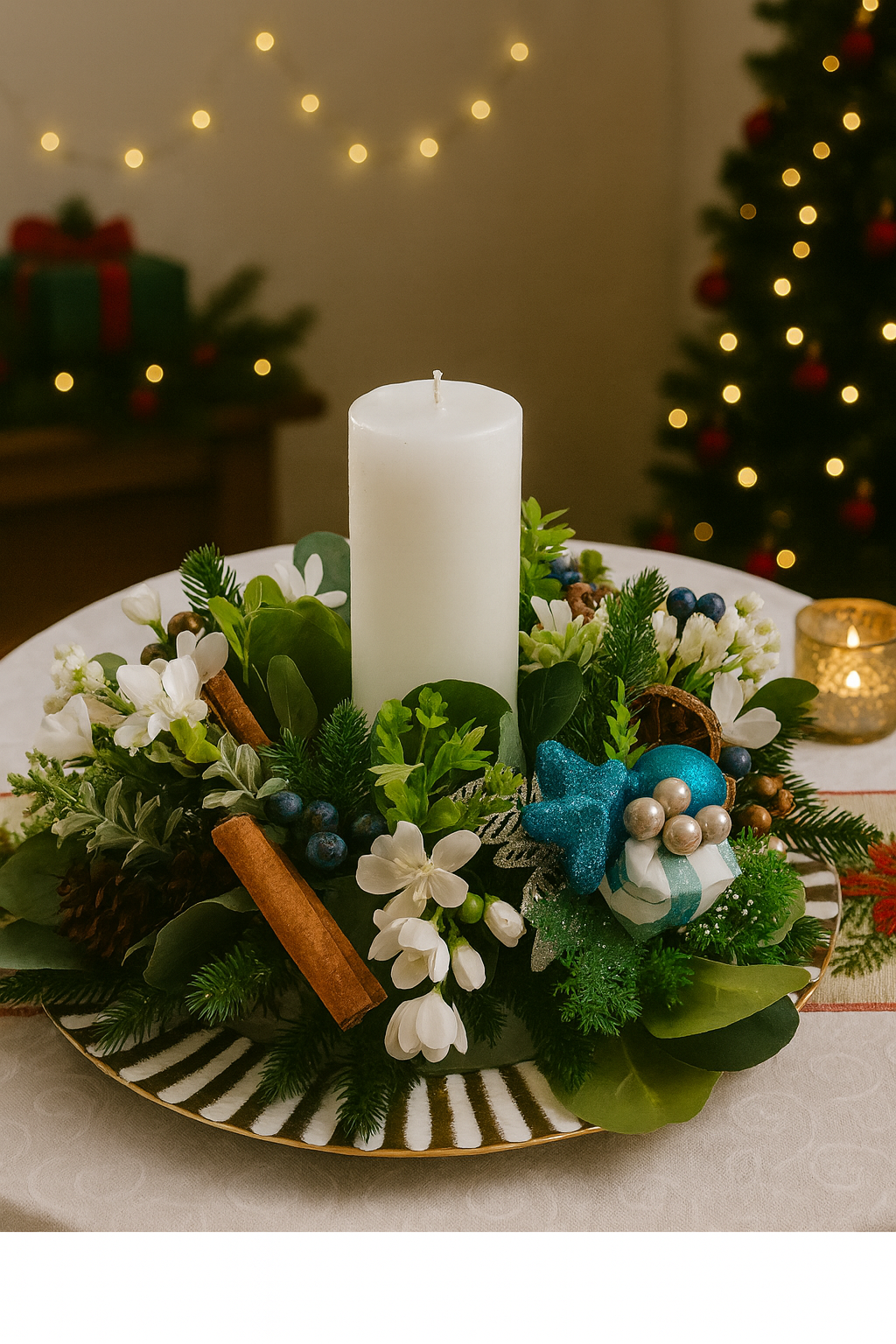 Christmas blue centerpiece